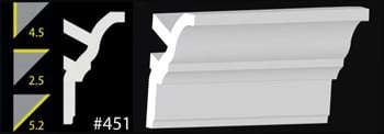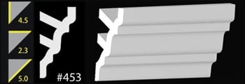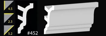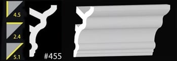 Our 4-1/2" crown moldings are ideal for larger rooms and slightly higher ceilings. They are also use in hotel construction. Easy to install - just paint, caulk and press.