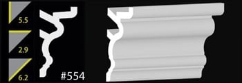 Our 5-1/2" crown moldings is good for high and vaulted ceilings. It is often used in commercial applications also. To do this in wood would require a built up crown using several pieces of crown. Easy to install - just paint, caulk and press.